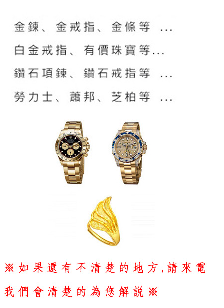 2.利息(以當舖法規定為準) : 月息最低1%~最高2.5%[年利率最低12%最高30%] (提早結清以日計算,無違約金)