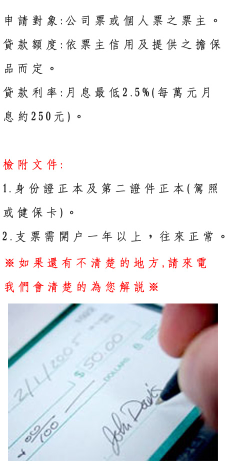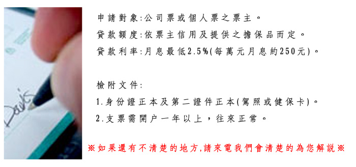 新北市專業當舖專營新北市當舖,新北市汽車借款,新北市借錢,新北市貸款相關業務,多元借錢方式來服務每一位客戶,現審現拿,申辦方便,放款容易,解決各行各業在資金週轉上的煩惱。
